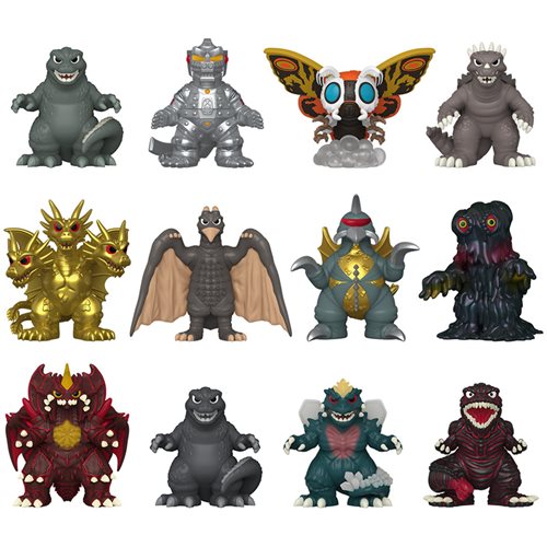 Celebrate 70 Years of colossal thrills with Godzilla! Collect your favorite Godzilla monsters with this assortment of mini-figures! Featuring Godzilla (1962), Mechagodzilla, Destroyah, Mothra, and more! collect them all! Each vinyl figure measures about 3-inches tall and comes packaged in blind boxes.